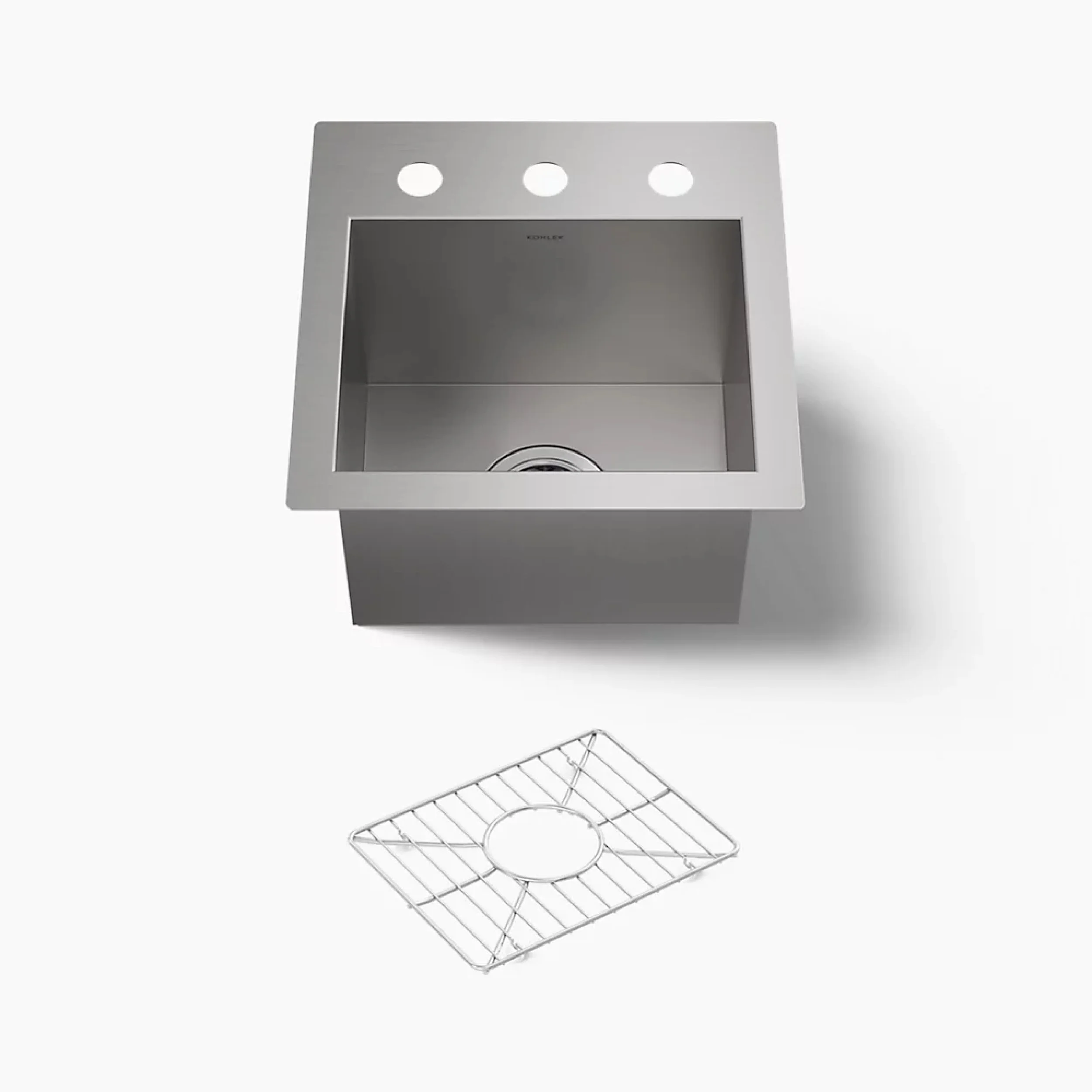 Entertain in style with the KOHLER® Vault dual-mount bar sink. Handcrafted from premium quality stainless steel, this square sink is ideally sized for prepping drinks and appetizers, rinsing vegetables, and drying glassware. When installed as a top-mount sink, Vault offers a low-profile rim that makes it easier to wipe from the countertop directly into the bowl. An included bottom sink rack helps prevent scratches and keeps the finish looking new for longer. Pair this bar sink with other Vault sinks to bring a contemporary vibe to your kitchen.