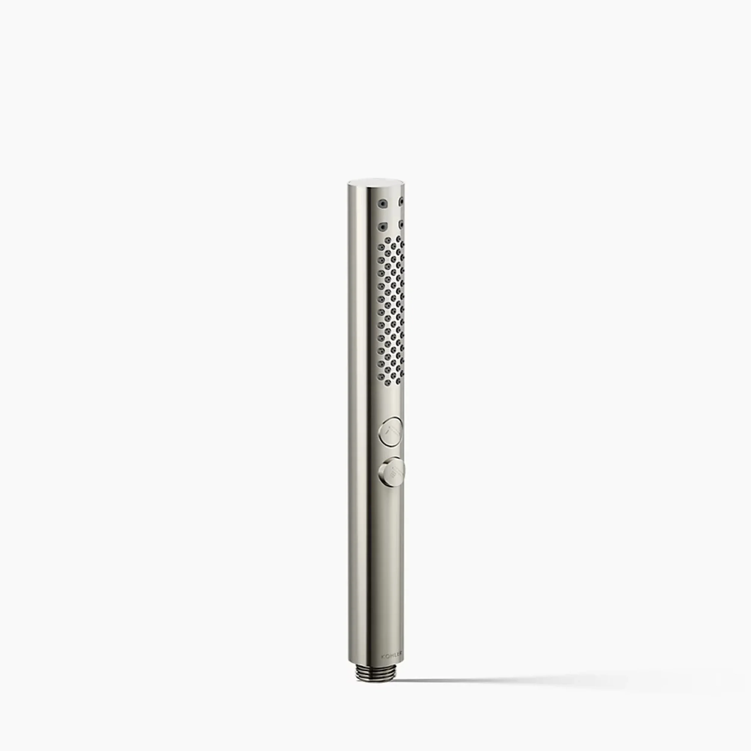 The clean contemporary look of the KOHLER® Shift+ Round wall-mount handshower complements a wide variety of style lines. Two spray options give you a personalized water experience, allowing you to target specific areas with a concentrated massage or full-coverage setting. This Shift model also features a lower flow rate for conserving water without compromising performance.