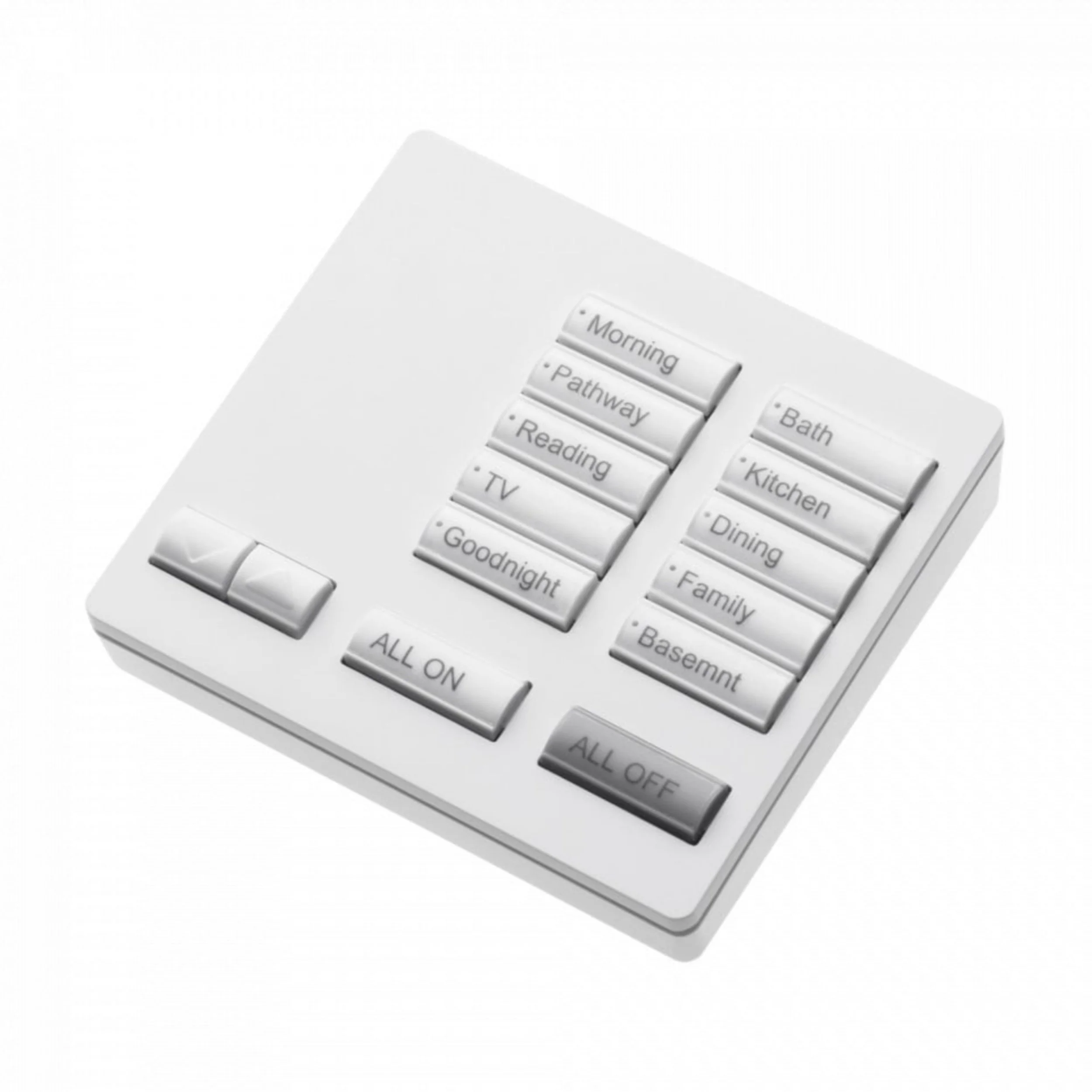 HomeWorks QS RF seeTouch Tabletop Keypads feature large, easy-to-use buttons, plus a unique backlit engraving option that makes the keypads readable any time of the day or night. The keypad buttons are rounded, making them easier to read.